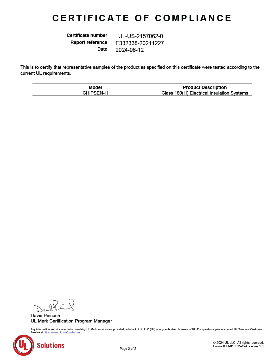 UL-Class H 證書